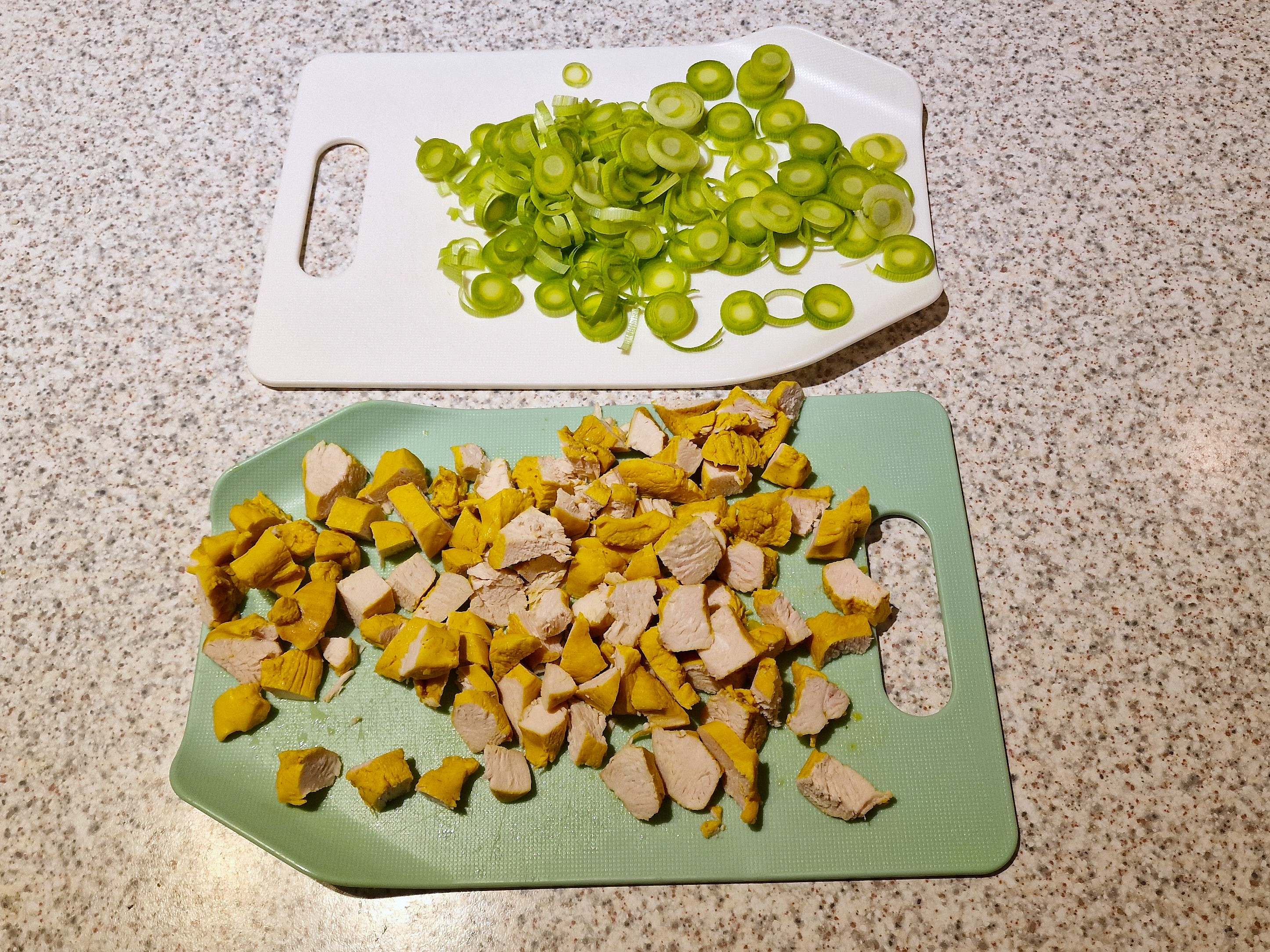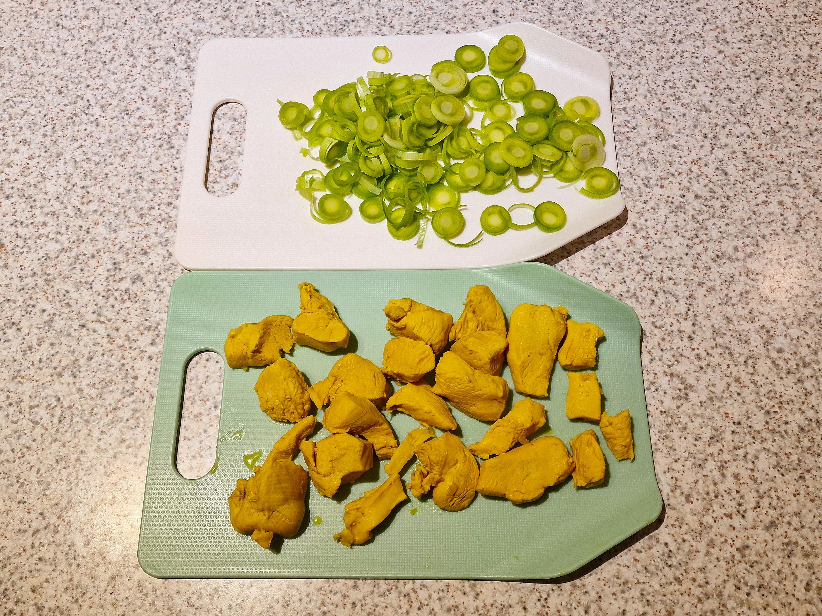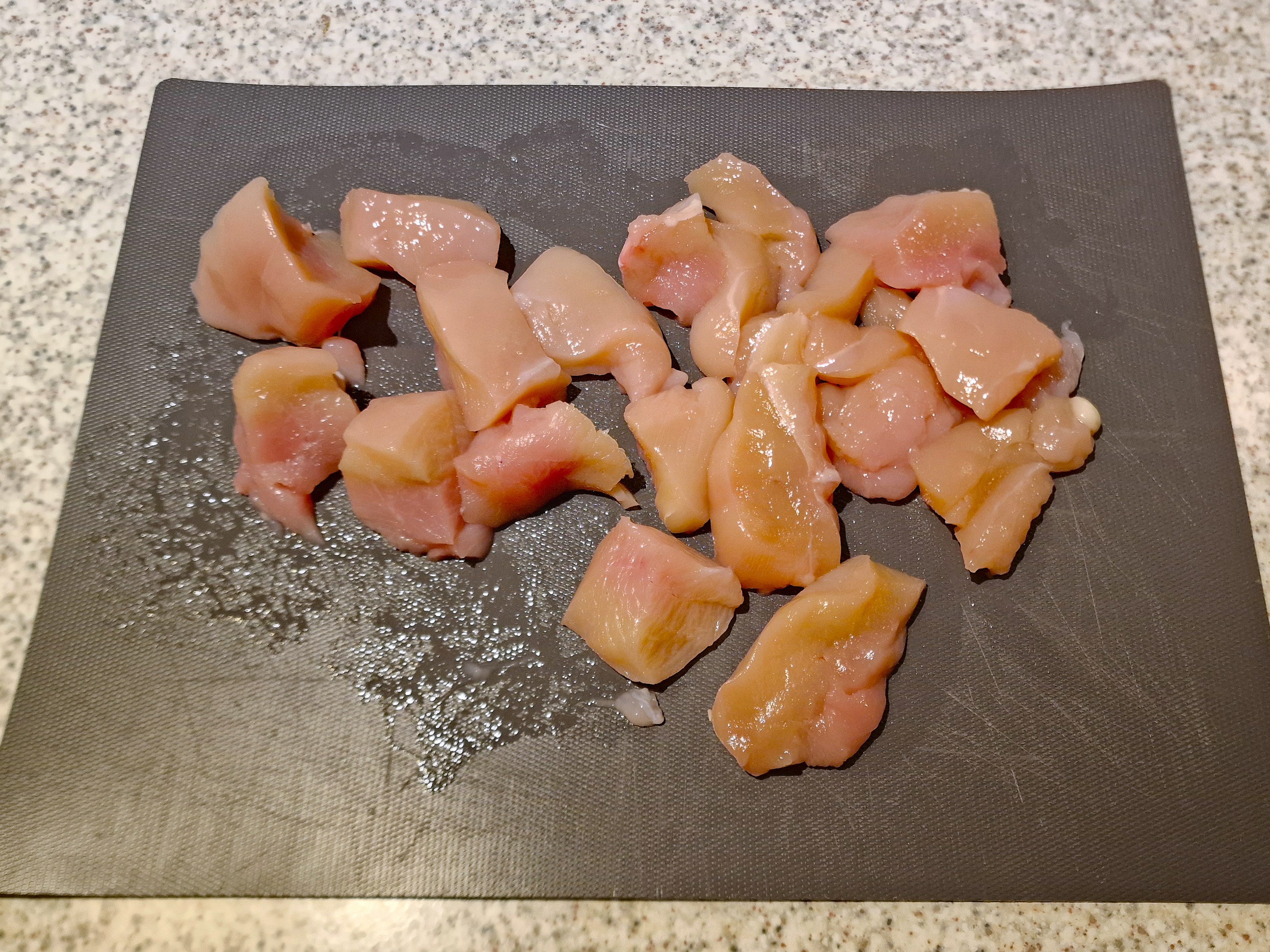 Skær kødet i store stykker (de skal fiskes op senere) og tilsæt dem.